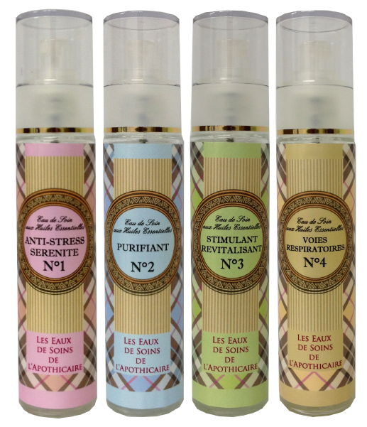 Les Eau de Soins de l'Apothicaire, le premier parfum médicinal. Quatre parfums à base d'huiles essentielles biologiques.